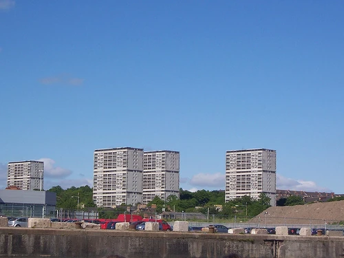 Broomhill is a small area in Glasgow's west end and has five 18 storey tower blocks. They are modular in design and similar to the ones that were demolished in Hutchesontown, Gorbals which were taller: