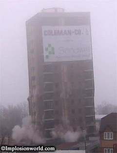 It was demolished by controlled explosion on the 19th of February 2006 by Coleman & Company Ltd.
