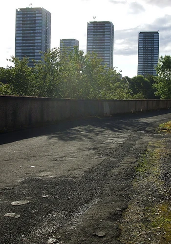 The Wyndford estate is situated on the grounds of the former Maryhill barracks in Glasgow. The scheme is bordered by Gairbraid to the north, Kelvinside and Kelvindale to the west, Ruchill to the east and the Botanic gardens to the south. Wyndford is in the top 2% of the most deprived estates in the UK. The problems are concentrated in four tower blocks on the edge of the Wyndford estate, each standing 26 storeys tall, in which drug abuse is rife - most popular are cocaine, heroin, and downers, like diazepam. There are four 26 storey tower blocks: